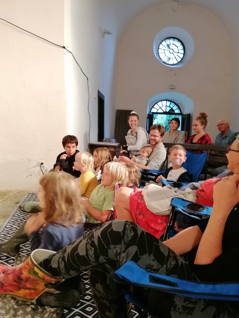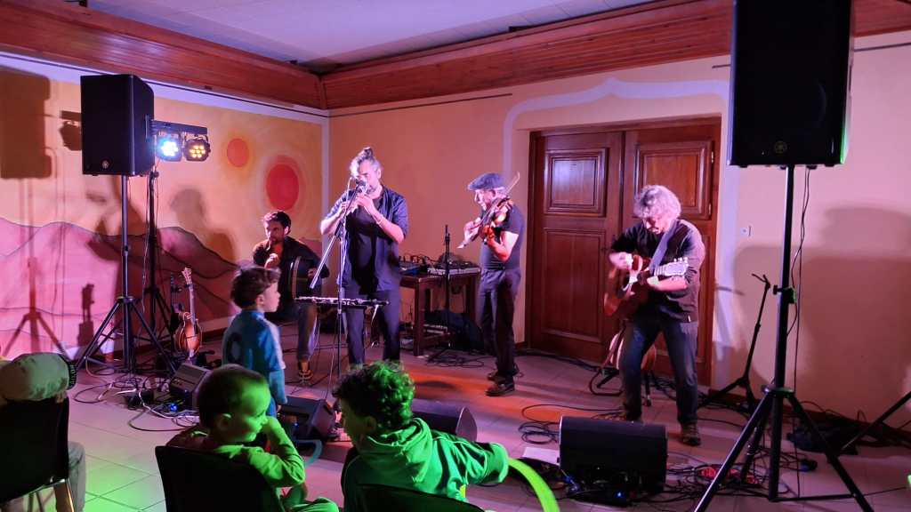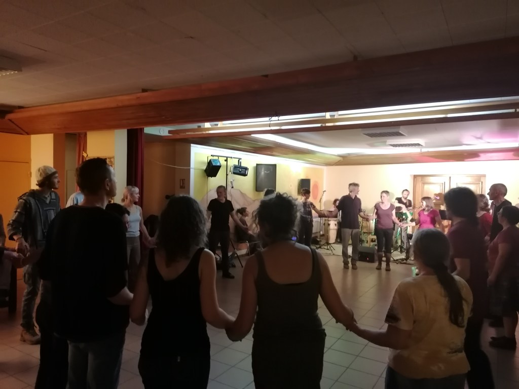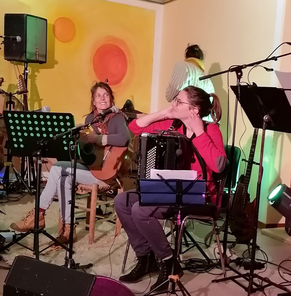 Avant notre concert, quelques uns et z’unes vont pousser la chansonnette avec les musicos.