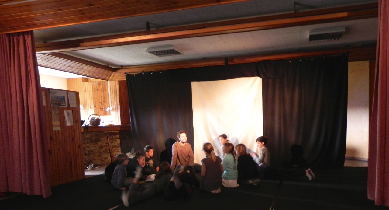 Cinq jours et demi de répétition avec Juliette et Olivier de la Cie « Le théâtre clandestin » ont eu lieu au foyer rural ainsi qu’une heure d’animation avec la crèche de St Frézal où les enfants du stage s’occupaient des plus petits dans la réalisation d’un parcours qui leur était dédié.