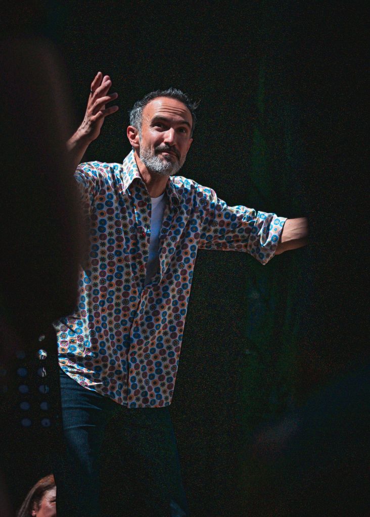 Nicolas Bourdon a travaillé aux côtés d’Armelle et Peppo Audigane autour de la relation entre contes et musique. C’est cette musicalité qu’il cherche à mettre au service du conte lorsqu’il raconte ou lorsqu’il accompagne. Conter, c’est aussi questionner son histoire personnelle et porter la parole de ses racines. Avec un travail de recherche mené depuis 2018 et grâce à l’accompagnement artistique d’Armelle Audigane pour porter cette parole, Nicolas conte avec la facétie et les mots de son grand-père. Un spectacle en naît en 2021 : Et pataouète et patatras !